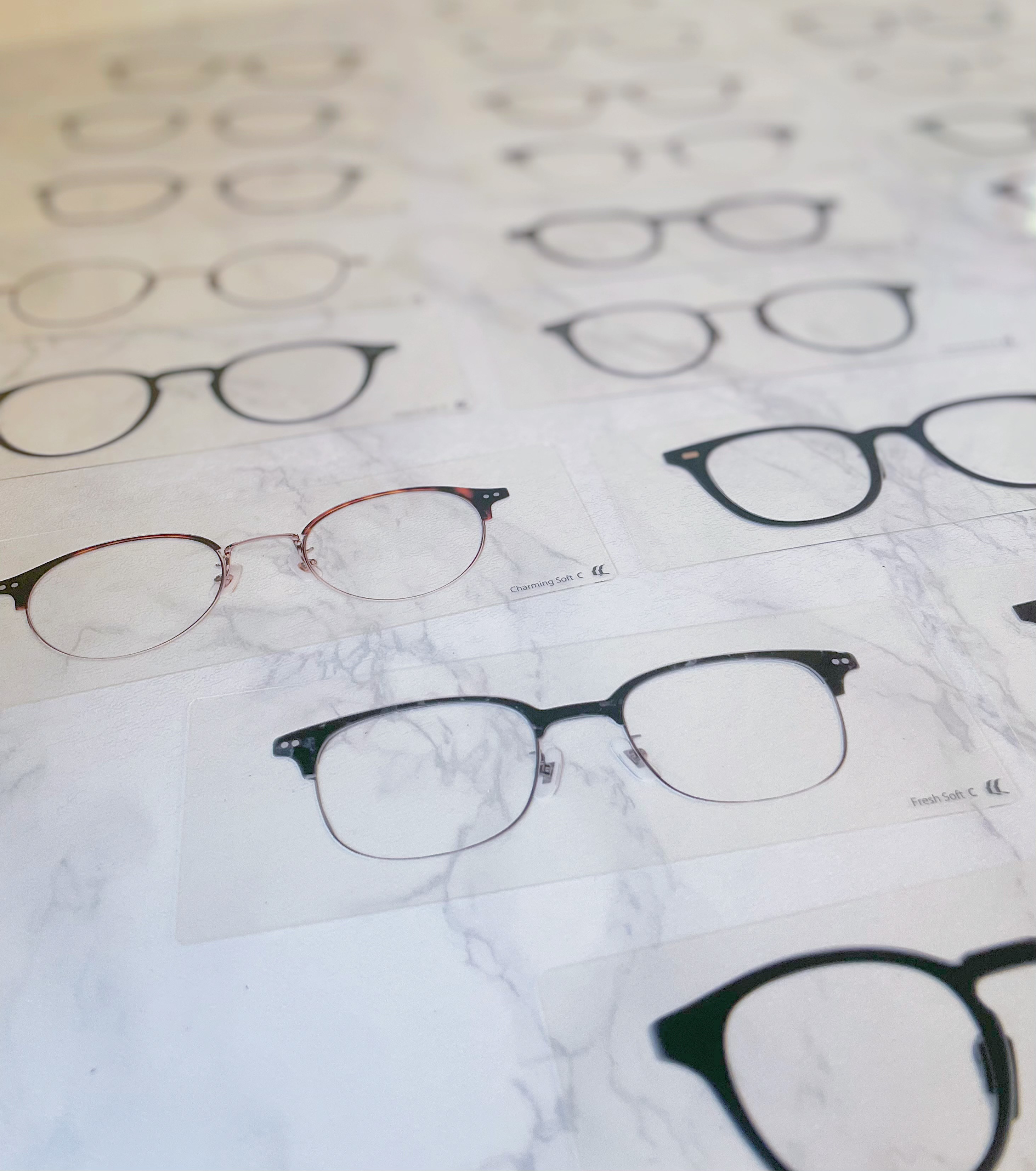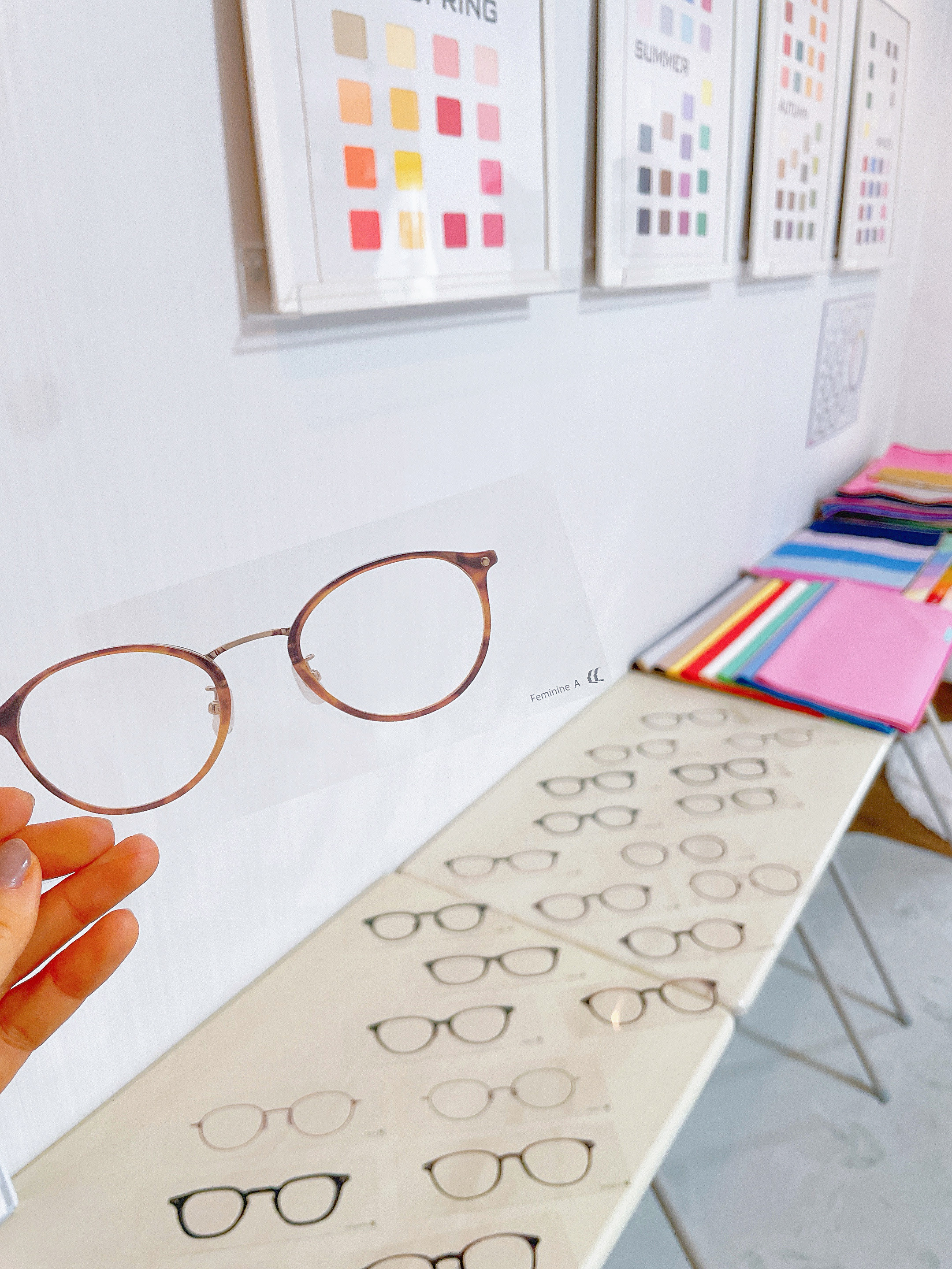 メガネ、柄布、アクセの実物を多数用意。鏡の前であてることで、「本当に似合う」という感覚を納得・実感いただけます。Daisy Skyならではの贅沢な時間。