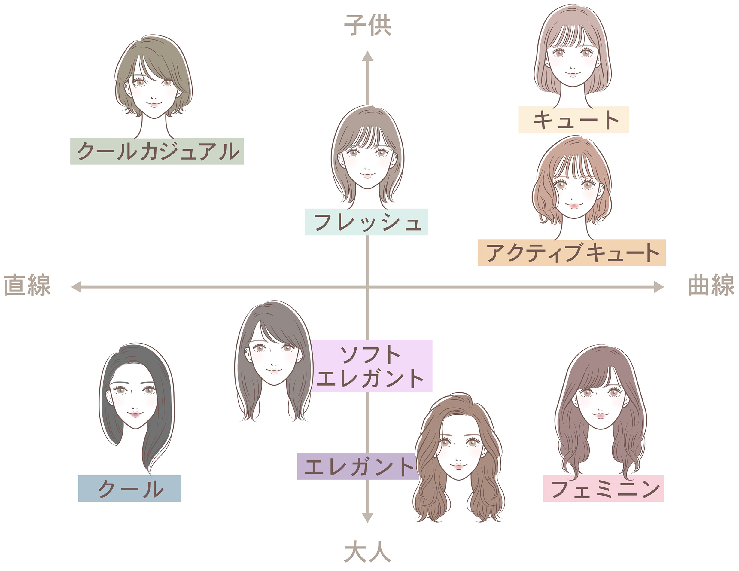 お顔立ちに調和する「服のテイスト・髪型・アクセサリー」を選ぶことで、